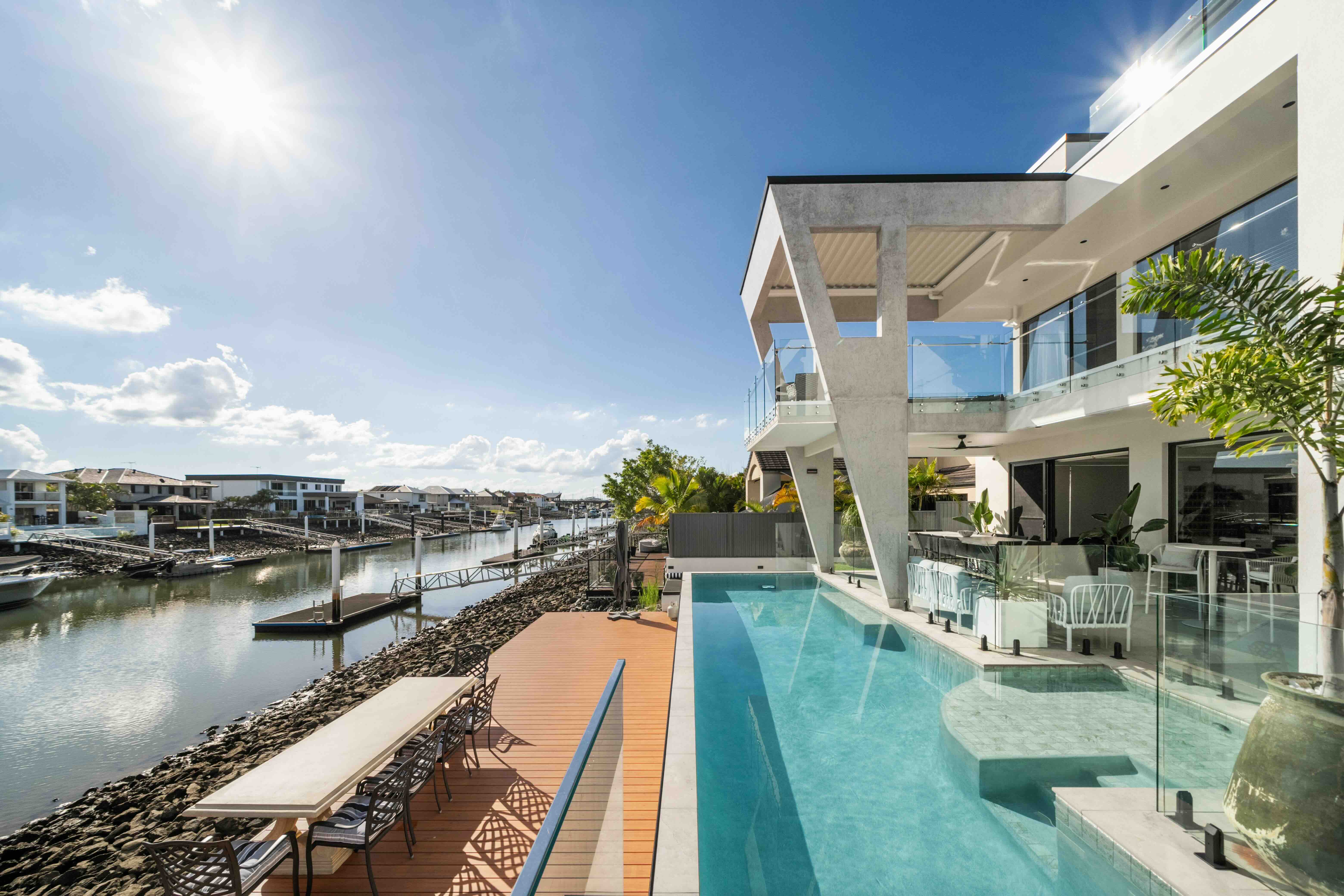 An impressive and monumental build in the canals of Newport. This enormous 1000m2 house has been customised with every detail tailored to suit the clients' high-class taste.